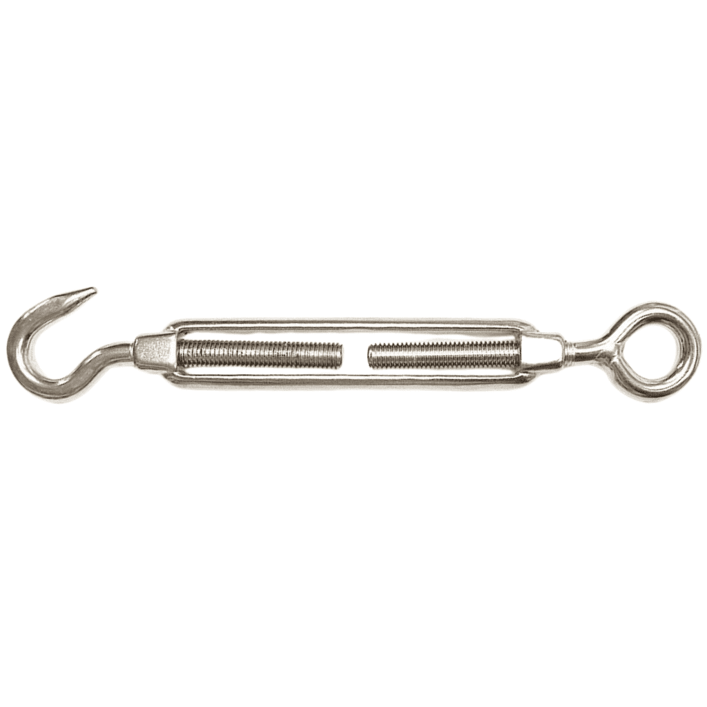 ART-8246B Paslanmaz Kanca-Kanca Gerdirme, A2-304 kalite paslanmaz çelikten üretilmiş, iki ucu kancalı yapısı sayesinde halat sistemlerinde hızlı bağlantı ve hassas gerginlik ayarı sağlayan korozyona dayanıklı bir bağlantı elemanıdır.