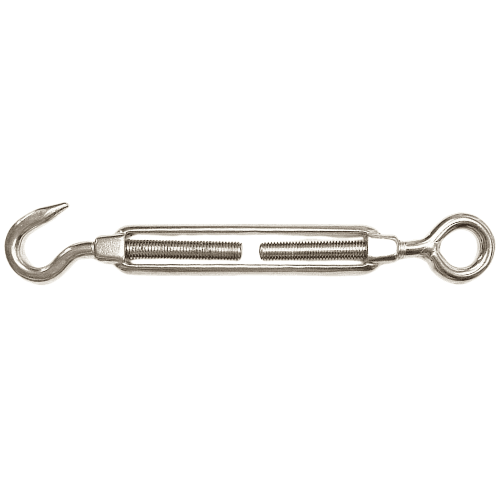 ART-8246C Paslanmaz Halka-Kanca Gerdirme, A2-304 kalite paslanmaz çelikten üretilmiş, halatların gerginliğini hassas şekilde ayarlayan, korozyona dayanıklı ve yüksek mukavemetli bir bağlantı elemanıdır.